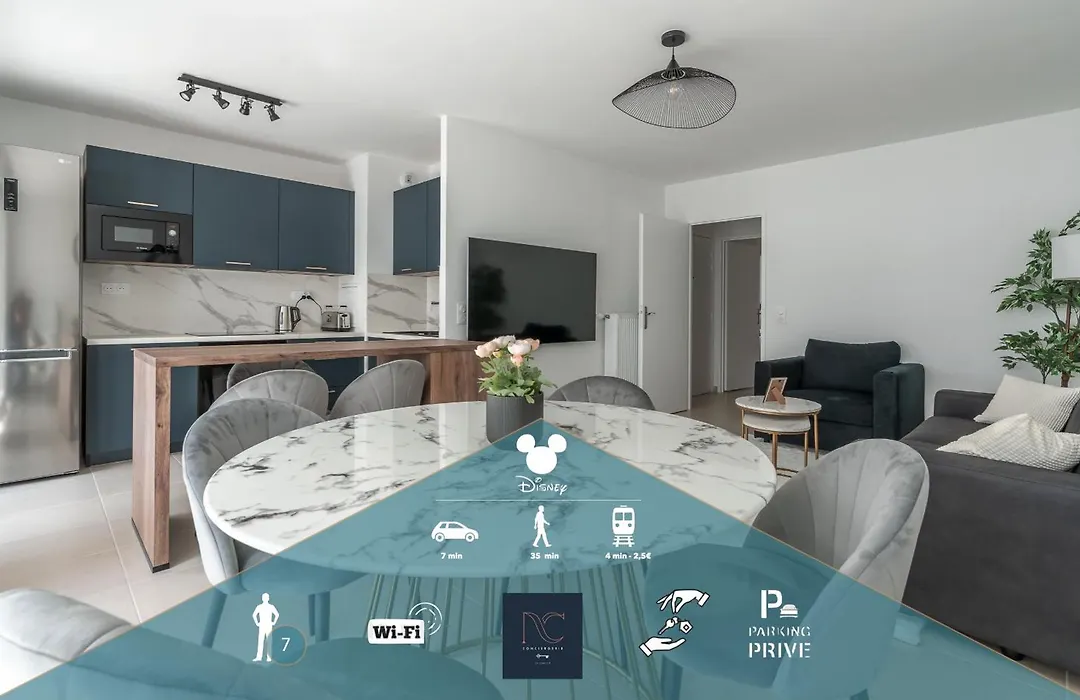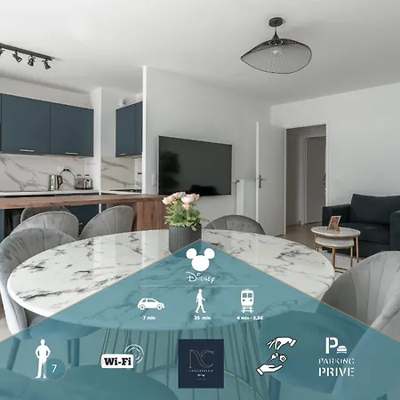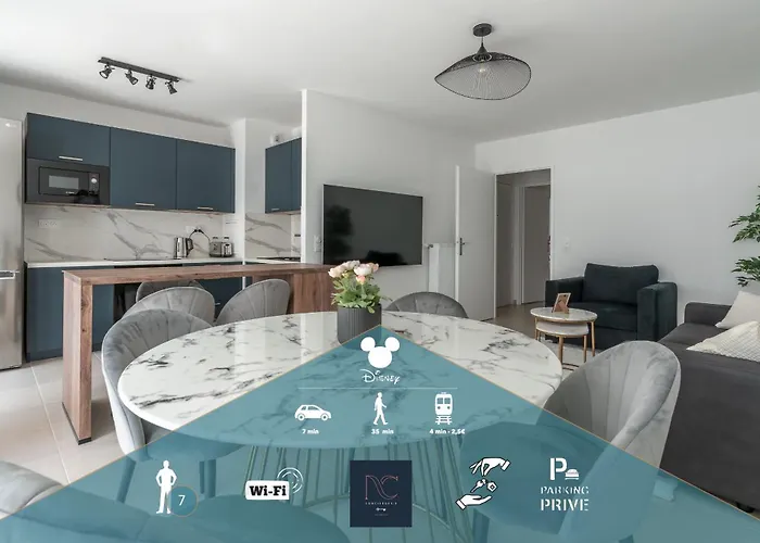 *Disneyland-Paris* Wifi 7Pers, Parking, Netflix boasts views of the city and is located a 10-minute ride from Ratatouille. This 1-bedroom apartment is situated just 600 metres from Val d'Europe train station and at a medium distance from Gare de Val d'Europe bus station.